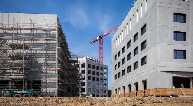 Schon jetzt sieht man an der gut fortschreitenden Baustelle, dass der 3. Bauabschnitt des Leitz-Parks mit Museum, Hotel , Büro- und Fertigungsgebäuden einen öffentlich wirksamen Akzent setzen wird.