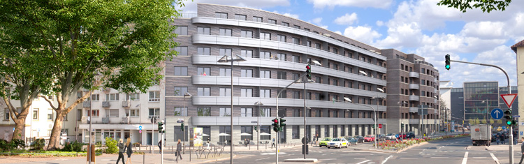 Die Qualität des Ensembles definiert sich über seine zentrale Lage in Bad Soden und die direkte Nähe zum Kurpark. Durch die Vor- und Rücksprünge in der Fassade sowie die Staffelung der Volumen in der Vertikalen entstehen signifikante Baukörper mit hochwertigen Freiflächen (Terrassen, Balkone und Dachterrassen) und ermöglichen unterschiedlichste, anspruchsvolle, komfortable Wohnungsgrundrisse mit Größen von 75 qm bis 170 qm, die über 3- bis 4-seitige Belichtung verfügen.