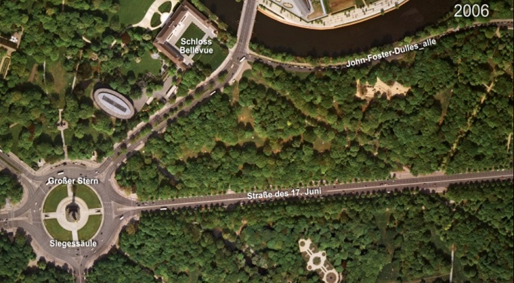 Anlässlich des Geburtstages der BRD zeigt das Zentrum 'Deutsche Luft- und Raumfahrt' eine animierte Zeitreise durch Berlin. Dem DLR stehen Luftbildaufnahmen und Satelitendaten von 1928 - 2006 zur Verfügung. Damit können Veränderungen von Jahrzenhnten übersichtlich in Form von Computeranimationen hervorgehoben werden. In Mitten des Tiergartes steht das Bundespräsidialamt - eine Dokumentation über den Ort.
